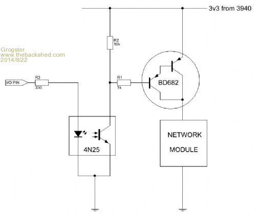 The issue I have is switching the juice to it. With only 3v3 to play with, and a relatively high current consumption, it is really quite important that there is no voltage drop across transistor type enable circuits.