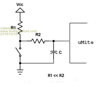 Hi Atmega8, I also use this setup on both sides of a rotary encoder using the built-in function on the uMite and it really cleans things up easily. Nice smooth increments (or decrements).