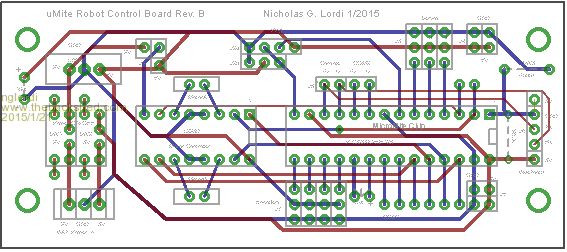 The attached figure (robot.jpg) shows my micromite controlled robot. It consists of an Actobotics platform with a with a control board (umiterc.gif) designed to interface the micromite with a L293D motor controller. The board allows easy connection of up to 3 servos, a ping, bluetooth module and an IR remote sensor (not shown). Two Li-Ion rechargeable batteries power the board. A 3V battery powers the micromite and the bluetooth module. A 9V bsattery regulated to 5V powers all other components. One can select either 5V or 9V to power the motors.
