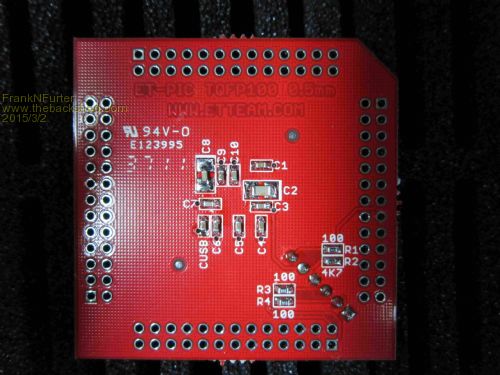 I soldered 50R on R3 and R4 (PGC/PGD on 26 and 27). C8 is the VCAP and is the same capacitor as on my 32MX170 (which works with this PIC very well)