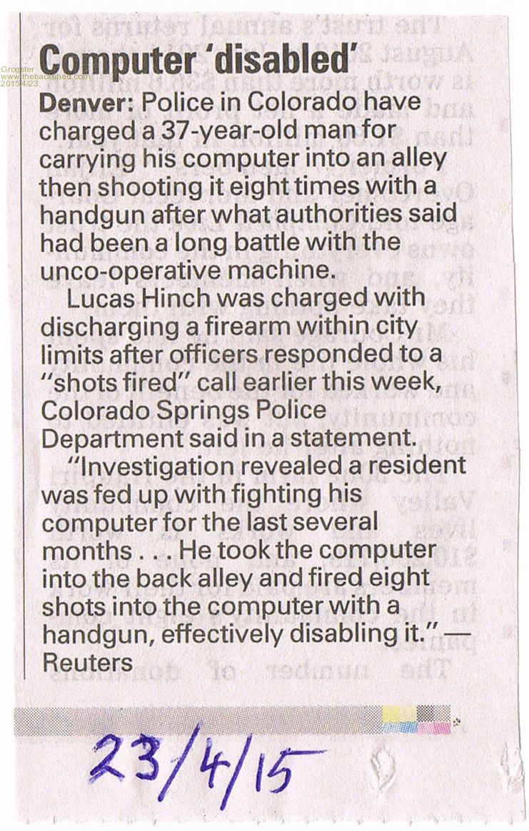 I don't normally link to or post things like this on this forum, but I could not help myself with this one. A cutting from today's paper that had me laughing my backside off.