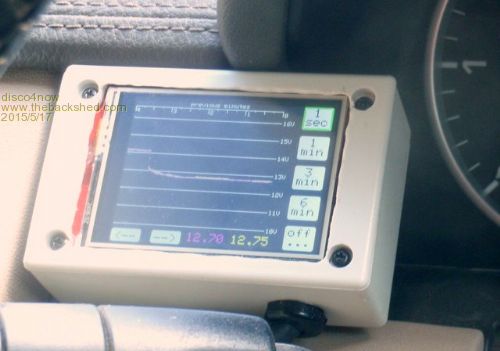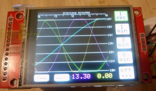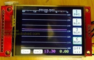 Back in December I stumbled across TBS and Micromite while googling. I had not played with electronics since the 80's so I ordered a couple of MUPs off Mick to see if they could be the solution to some problem I might be able to dream up. Well here it is! We have a caravan and when we are free camping I am always looking at the battery voltage to see how the batteries are holding up. The car has a dual battery setup and a national Lunar dual battery monitor that shows a row of LEDs that represent the voltage of each battery. In both cases you see the current voltage, what would be more informative would be to see the history of the voltage as well.i.e. is is going down fast, holding. Enter the MMII Dual Battery Monitor using the ILI9341 touch screen to graph the voltage.