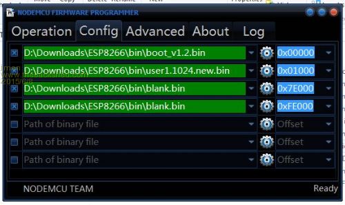 @Jman I've been chasing around the NodeMCU site for any sort of User Guide for the ESP8266 'Flasher'. I couldn't find anything obvious so set it up anyway at 115K2 and pointed it to the files as per your config screen above. Pulled GPIO0 low and powered it and the two MAC addresses appeared immediately. I then hit the 'Flash" button and a couple of seconds later the ticked green box appeared at the bottom. That seemed awful fast and I wasn't convinced anything had happened so powered down, disconnected GPIO0, connected TerraTerm and tried an AT+GMR command. This came back with the '0018000902-AI03' response which I think is what used to happen with the Electro Dragon 0.922 firmware. Now I'm not sure what I've got. What should the Version response be your setup? Greg |