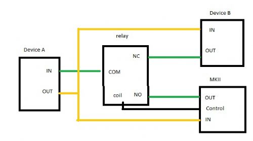 That was going to be my second question, if the I2C slave still works with Com ports. Perfect, gives me lots of options to play around with on paper, before I start breadboarding my system. My troubles is the baud rate for the two devices is 57600, which only gives me Com1. With the 2 devices (A & B) talking back and forth, I want to sneak in the middle and submit my own serial data to deviceA the odd time. I'm thinking instead of reading DeviceB, and passing the data to DeviceA, I'll just use a relay or some type of IC switching chip. Default state is letting A and B talk back and forth. When I want to send my code, I'll turn on the switch, send my code, and turn off the switch. MkII 44pin - v5.0 ColorMax 2 - v4.5 |