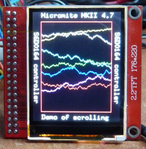 In addition my routines include a TRIANGLE command and also for the SSD1963, when wired in a specific way, they support scrolling of any sub-region of the screen.