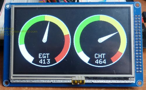 Ok... Hey, I have got 10 of them... Tally Ho, here we go... I want to use these for single "slave" gauges on the Rs-485 bus. They just listen for their data values and show things using your awesome gauge code..! I think we need to add an "oh sh*t" mode if the unit stops receiving data from the bus... Maybe a large red "X" like I have seen on some other cockpit stuff... The comms protocol is dead easy, consisting of an attention character, "#", followed by gauge type, then gauge instance, and data value with a simple "cr-lf" as the terminator...