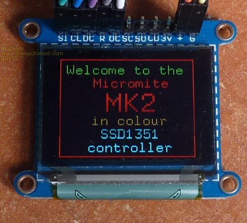 The code is only tested on a 128x96 version of the display but should also work on a 128x128 - feedback appreciated. The vertical resolution is set in the call to S1351.init