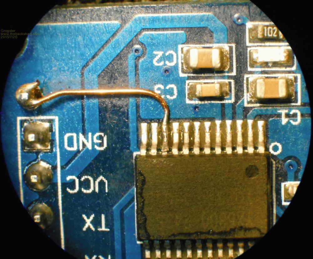 Here is a photo of the mod from my microscope. The enamelled wire I used was 0.25mm