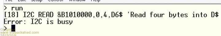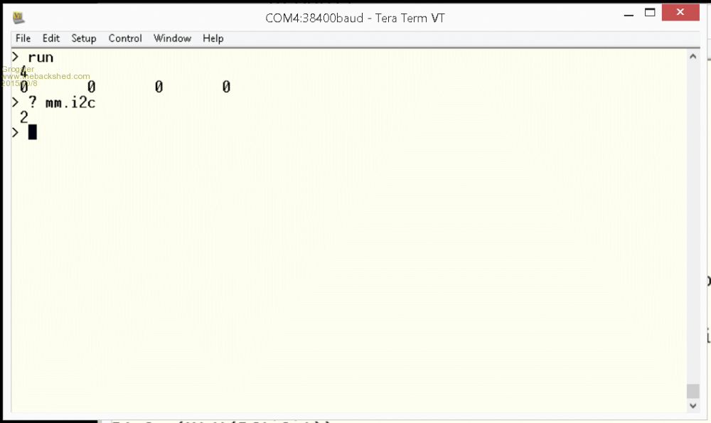 Hi G add this after the write Print "0=ok 1=nack 2=timeout"; mm.i2c If you get a 0 then the write was good this way no guess work Regards Jman |