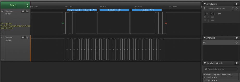 EDIT: Analyser results are from my previous attempts, not jman's test code. I have yet to try any of this code on a 170, but that is next. I will cut the SCL and SDA tracks to the MM+ chip, and hop onto these from a 170. Smoke makes things work. When the smoke gets out, it stops! |