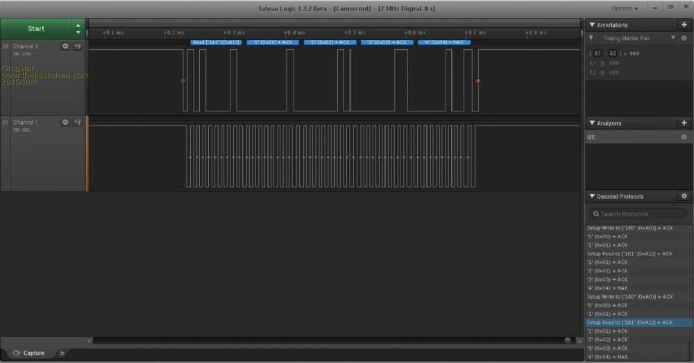 I will check for continuity on the SCL and SDA tracks - perhaps we have a fluffy via on the PCB or something. I will also check that ALL pins 1-4 and 7 are indeed grounded. Smoke makes things work. When the smoke gets out, it stops! |