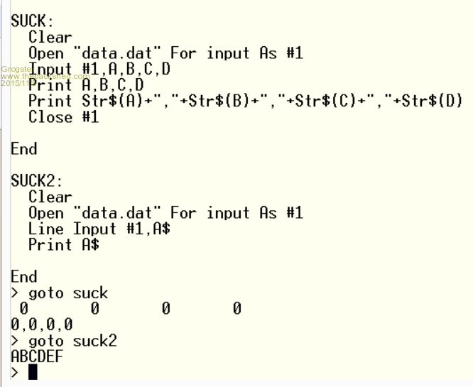 LINE INPUT #1,record$ - this will try to input a line of text from the file on the SD card previously opened.Smoke makes things work. When the smoke gets out, it stops!