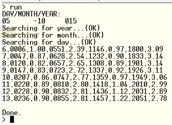Then keep reading the entries until I find the one that corresponds to the day in DATE$. That done I want to INPUT the next 8 entries which are the times and heights of the tide and print them to the screen.