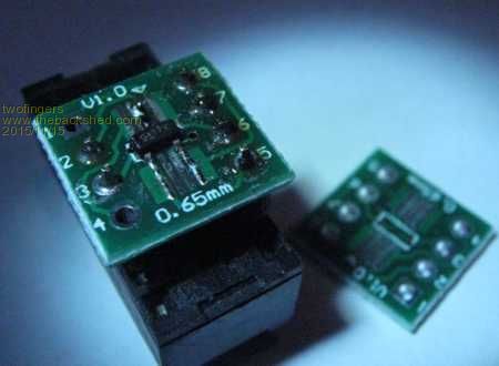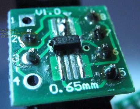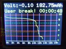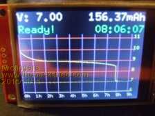Last year I created a Discharger/Battery Tester for the MaxiMite. Today I can release a universal tester for one cell NiMH & LiIon (1.2V, 3.6V=18650, 9V= seven cells). You can use this device battery powered as stand alone or PC connected. (It uses the touch screen.) this diagram shows a new "ready to use" battery ("200mAh", brand name). This project needs only a few cheap parts and can easy be made on a perfboard (perfboard design by using "BlackBoard"). In addition to your MicroMite2 of course (four pins) and some cheap connectors/adaptors. Instead of the TO220 IRL540 logic level N-MosFet I used this time the tiny IRLML2502 on a adaptor PCB. (eBay 20PCBs/1$, SMD to DIP8, 0.65 1.27mm)