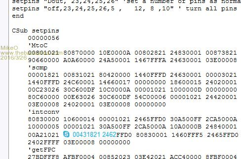 Wow, imagine my surprise, I was browsing through the latest topics on the "The back shed" today , I was reading Matherp's post on setting multiple i/o , and there right in the middle of his CSub code , a hyperlink for Skype !