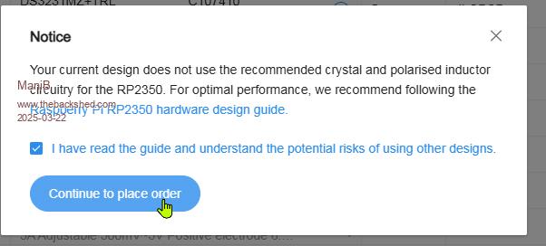 Ok, the question about the BOM and P&P has been answered. ![]() This warning came up, which I ignored: ![]() I now have that in my shopping basket. Do I have everything I need to order? |