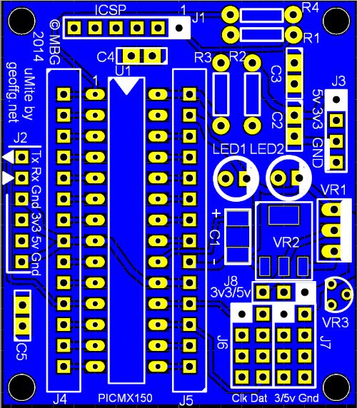 Hi Viscomjim, I have submitted it for manufacture by my PCB FAB house (sitopway.com) on 1.6mm (I thought of 1.2mm but decided on standard thickness) lead free HASL material. I should be able to provide them for $3.00Aus each plus $1 postage in Australia and $3 International. This allows for PAYPAL Commission and leaves a small bit towards a beer. I reserve the right to change these when they arrive but it is a good ball park figure. Regards, Mick Mick's uMite Stuff can be found >>> HERE (Kindly hosted by Dontronics) <<< |