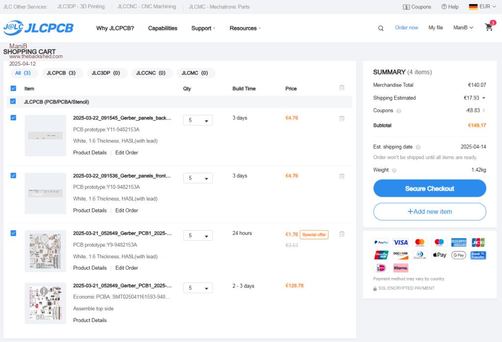 My boards are still in production at JLCPCB (89% production progress). I have now ordered 5 PSRAM from AliExpress and am surprised that I only pay €1.69 including shipping. How do they do that? |