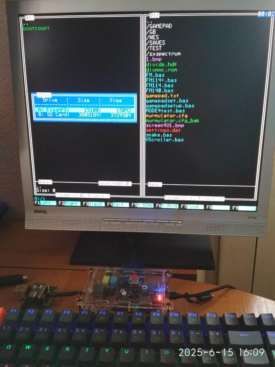 this is version 0.2064. There are no new features. However, I noticed that the file cursor movement with a USB keyboard is so slow because the default repeat rate is set to a value that is too high (for this purpose). I was wondering why my optimizations had no effect. I don't know how it is for PS2 keyboards. In any case, I've added the "Keyboard Option" for those who like to experiment; the value is reset to the default when you exit the program.