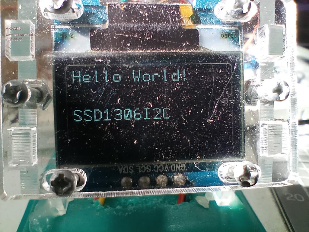 Small Steps. I tried connecting the ST7735 with CS, RST and RS but didn't work. I then hoped that I could configure the display as ST7735I2C but no luck. I then dragged out the OLED display and confirmed that it was SSD1306I2C. It performed the Adafruit graphics test with the Arduino. So I plugged it in, configured it and got this! ![]() Paul |