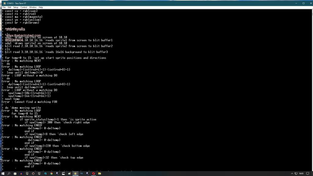 If terminals were so easy then why do most win users not use them and why are linux users a minority? An interesting thread. What's really interesting in this comment is that I spend my day with 6-16year olds either using Windows (Scratch / Python) or MMBasic. Since switching to the command line and TeraTerm (Windows) and striaght PuTTY (Linux) I have had almost universal acceptance and actual "wow" moments. For most, its seems to be the removal of clutter and the "other windows" - yes you need to learn how it works, but for my leaners they see that as part of the fun. On a roll, I showed my 14yos Powershell and how they can use scripts to rename all files in a directory in one go. Far "easier" that via the GUI and doesnt need an app. Horses for courses I suppose. N "Like." I got my 8 year old grandson to flash leds in gcbasic. At 8 he is used to a mouse and icons ie windows. Did you give the people you taught a windows option? There seems to be a picaxe loyalty factor with mmbasic ie no negative criticism that is not in gcb forum where all thoughts are considered. It is a job learning new basic syntax without learning a retro editor. The effort should be coding not the editor. It is like using an office word processor and writing a novel. stan |