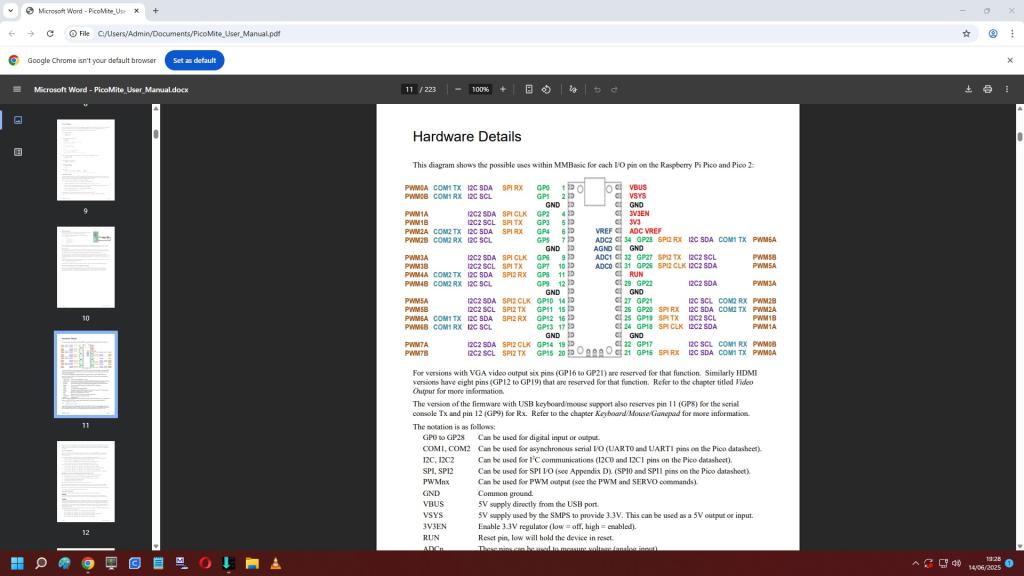 wanting usb to ttl to be on different pins using > option list PicoMiteHDMI MMBasic USB RP2350A Edition V6.00.02 OPTION SERIAL CONSOLE COM2,GP8,GP9 OPTION FLASH SIZE 4194304 OPTION COLOURCODE ON OPTION KEYBOARD UK OPTION RESOLUTION 640x480 @ 252000KHz OPTION DISPLAY 30, 53 OPTION SDCARD GP22, GP6, GP7, GP4 tried OPTION SERIAL CONSOLE COM2,GP20,GP21 but says invalid option gp22 and gp9 used. just want to wire usb to ttl and sd card reader neater ![]() Edited 2025-06-15 06:41 by stanleyella |