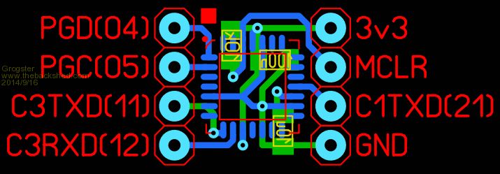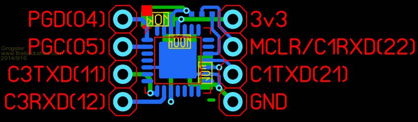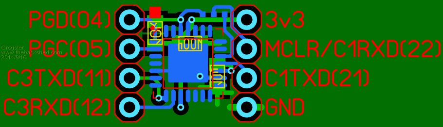 This layout also allow re-use of MCLR pin - it becomes the COM1 RXD when you solder-blob across the pads at the top of the module. You just need to move the solder-blob, if you ever need to update the firmware. Smoke makes things work. When the smoke gets out, it stops! |