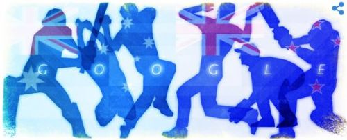 Even Google is playing cricket today. Australia to the left and New Zealand to the right in the image. |