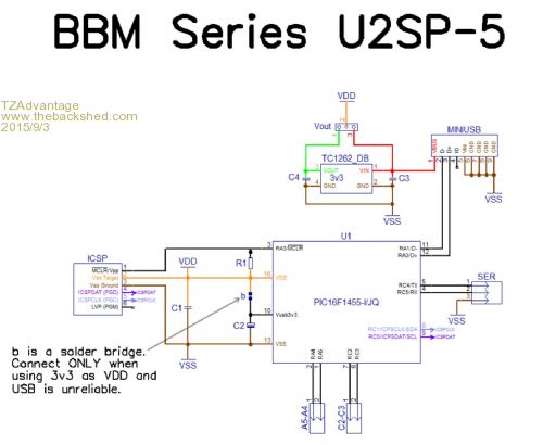 But how do we know that the MCP2221 and the 16F1455 are identical Silicon? Are you using the 16f part or the MCP part? It worked perfectly for me driven by an external 3V3 regulator with Cap between Vbus and ground. Additionally matherp says above that he destroyed a device by feeding Vusb. I would say prototype it both ways and see what happens, but I am happy with mine as shown in the first Schematic I posted. Cheers Chris EDIT: JTR0701 posted simultaneously with the opposite answer, so I guess both ways work. Only time will tell about reliability. http://caroper.blogspot.com/ |