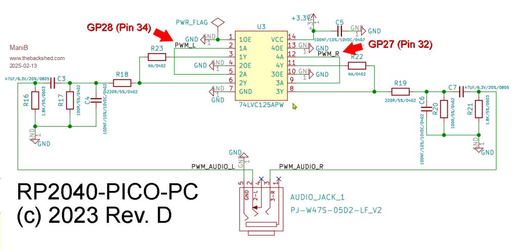 Hi matherp, I checked the connections on my board with the Rev. D and couldn't find any interruptions in the connection of GP28 (PWM_L) and GP27 (PWM_R). And GP26 (DVI_CEC) is connected to the HDMI1 connector. |