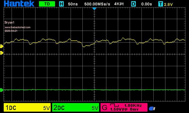 Ok made up the 5 volt board using BC337 trannys as I have plenty of them here and getting closer ![]() Phill I didn't use enable as it is an option and the DM556 can work without using it Edit: just ran the code with Channel 1 just connected to GP26 which is the step pin and it was a tad cleaner trace but the same as the picture above ![]() Edited 2026-04-21 11:44 by Bryan1 |