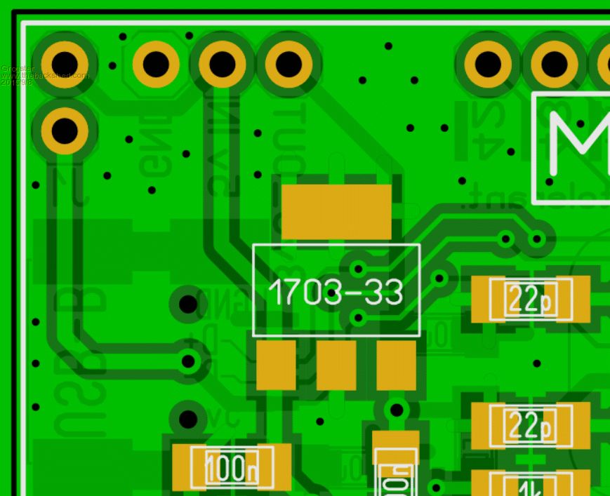btw, i did accidentally connect up an MX170 with power reversed the other day, and it still works (ie, survived). one observation: if you push the trace between the "3v3_OUT" pin and the output of the regulator to the opposite side of the board, you can eliminate the 3 small 'jumper' tracks that originate under the regulator. this saves 6 vias (which in olden times would be a cost saving), and avoids vias in a location (under the regulator) which in some devices can be metal. cheers, rob :-) |