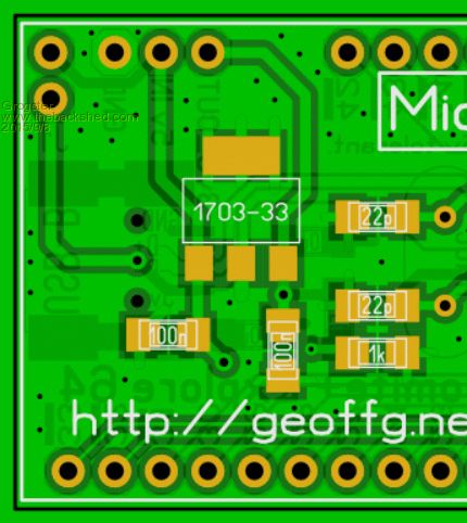 Yes Grogs, that looks great. If you want to fine tune the layout you could swap Vbus and +5V on the two pin jumper and then push the pins slightly closer to the ground pin so that the spacing between the Vbus jumper pin and the ground pin is 0.1". That way someone could solder the single Vbus jumper pin on the underside of the board and have a row of four breadboard compatible pins with Vbus on one of them. It might not get used much but it would enable someone to wire their own circuit connecting Vbus to +5V (perhaps using Rob's circuit). Yes, they are tough little chips. When I was developing the Maximite I accidentally ran an MX795 on 5V for a few hours and it survived. Geoff Geoff Graham - http://geoffg.net |