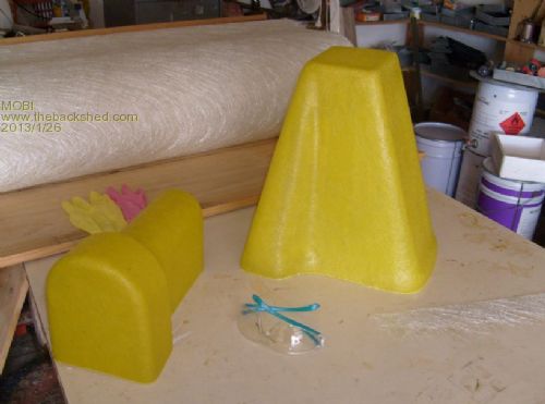 I mentioned that I was doing a bit of fibreglassing - making windmill caps. Here's a couple of snaps - setting on the male mould and off the mould ready for a couple of coats of yellow flocoat resin. What has that got to do with maximites? In the background is one of my tray top campers and I intend to fit a maximite car and camper monitoring and control system. Loose connection, but a connection anyway.