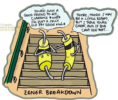 @Grogster Zenner act as regular diode if plus voltage connected to Anode and minus on Cathode so forward drop Voltage is ~0.7V. Don't worry this circuit I used at least 100x. So if you connect +V to center pin the zenner open ~ at 5.6V and if you connect opposite +V to the ground zenner acts as regular silicon diode so it open at ~0.7V. Bo |