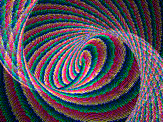 MODE 2 Dim integer cm(15)=(0,1,2,3,4,5,6,7,8,9,10,11,12,13,14,15) Colour Map cm(),cm() Q=.375 For E=1 To 40 Step .025 R=E*E/4:T=R/99 s1=Sin(T):c1=Cos(T) N=5+R/1:A=-Pi*2/N S=Sin(A):C=Cos(A) X=0:Y=R:I=Int(Rnd) For L=0 To N I=I+1 And 15: If I=0 Then I=1 Color Map(I) Pixel 160+X*c1*Q-Y*s1,120+X*s1*Q+Y*c1 x1=X*C-Y*S:Y=X*S+Y*C:X=x1 Next Next Do T=cm(15) For i=15 To 1+1 Step -1:cm(i)=cm(i-1):Next cm(1)=T For i=1 To 15:Map(i)=cm(i):Next Map Set Pause 50 Loop Edited 2024-12-01 06:11 by javavi |