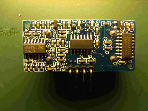I've just gotten around to testing an HC-SR04 module that I bought in Jan last year. I've connected it to Phil's 44 pin board and it works fine using uMite Basic V15. This module also looks exactly like Frank's (and Phil's apparently)- same chips and placement on the rear. I used the same code that Paul tested his with but on pins 2&3 of the 44 pinner. Do