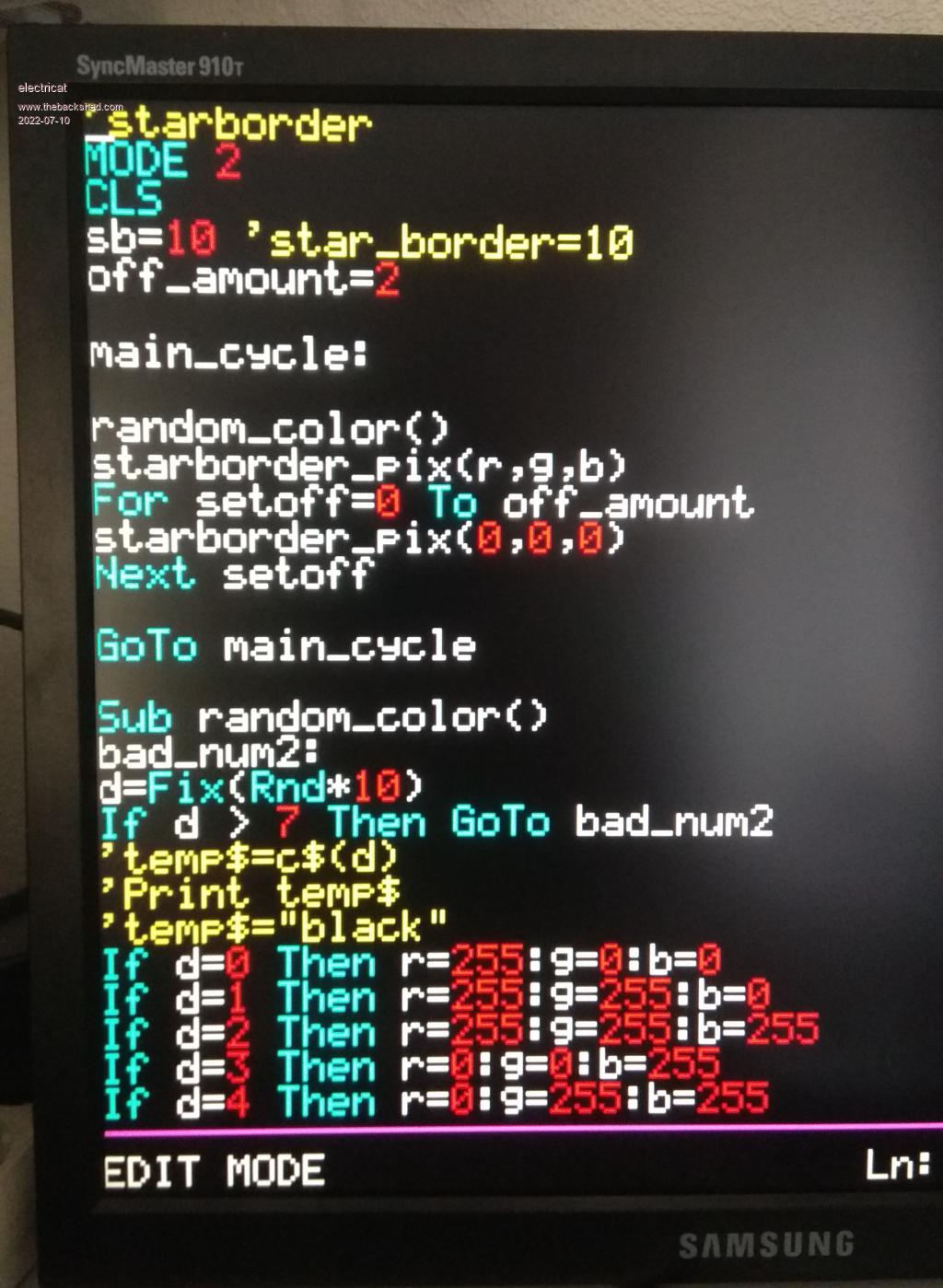 Hi, Matherp. Best wishes to You and forum members :) Thank you all for a good time we have. It`s not about PicomiteVGA beta, but about 5.07.04 from Geof`s official. I was writing small program and saved it and powered off/on PicomiteVGA and everything went as expected. And while tinkering around I noticed once empty edit screen :) As it was no any program. OK. I loaded some pre-save from flash slot n and continued on. And then it happened again. OK. I started looking more carefully whats the heck is going on and this is what I found. I was powering PicomiteVGA via monitors (NEC P242W) USB. Monitor was set to sleep after 10 mins, so all goes OK until it is going to sleep and if it is in sleep mode, still everything goes well. If I wake up monitor from sleep state, PicomiteVGA works some few seconds, then error rises "Error: Invalid adress - resetting". PicomiteVGA resets and boom! Nothing to edit. Still flash slots stores all pre-saved program versions. I just switched to normal power supply, and no problem so far. Still it seems to me this case might be interesting for you :) Few pictures how it goes, and I have no idea, how it might erase main, coz if I would kill off power from regular power supply - no problems :). Editing program ![]() Running it, my work monitor, powering PicomiteVGA is in sleep mode ![]() Waked up, and thing is reseting ![]() After reboot ![]() My MMBasic 'sand box' |