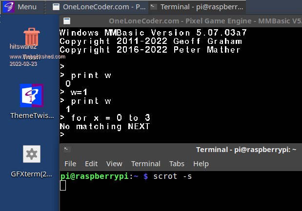 LOL, thanks for doing this Peter. Will incorporate in the next alpha for MMB4L, though that is some time away. Best wishes, Tom MMBasic for Linux, Game*Mite, CMM2 Welcome Tape, Creaky old text adventures |