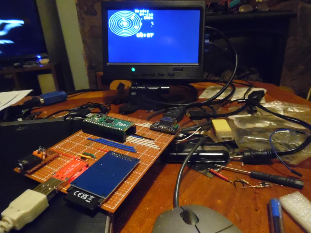 Peters Ref. design, now fully self powerd and portable, I'm working on a case now. I repurposed the 'reset' button to be a battery power on/off button, I removed the 3 jumpers which select signals to the SD card, now wire links on the back, the keyboard is wireless USB, the HDMI cable is nice and thin 30cm, I should be able to fit the box, once designed, to the bottom or back of the display. Powering only itself, it'll run for about 16hrs, or powering the mini LCD as well, as shown here, about 3hrs. ![]() Edited 2025-01-16 23:36 by Bleep |