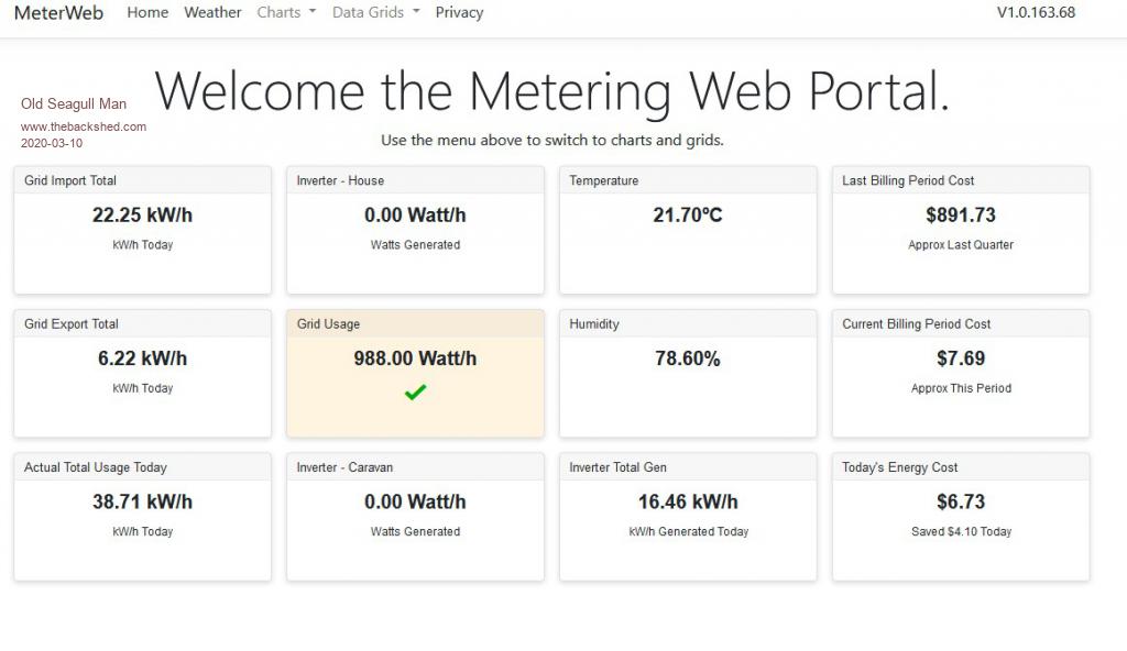 This is just the front Info Page See around the house. All inverters are on the inverters page.But from this we can see export, or import, and control inverters, or turn on or off air-con, etc.