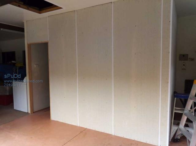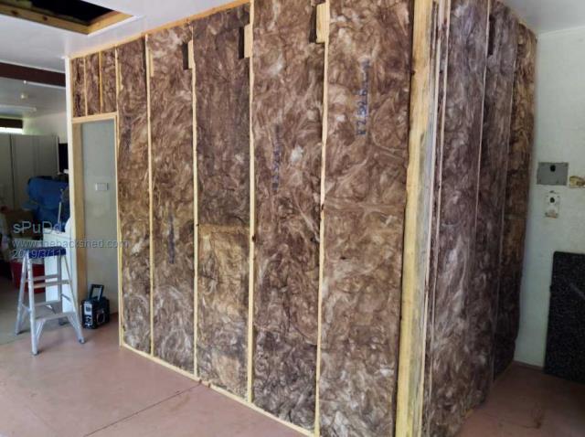 Walls were packed with Rockwool, then the outside fibro sheet went on. Makes a big difference in keeping the room cool.