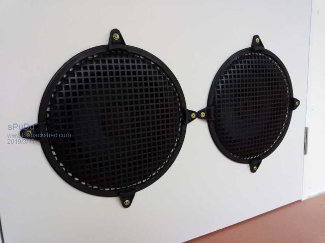 I used steel speaker box grills for fan covers as they are stronger than the plastic ones that come with the fans. Work a treat.