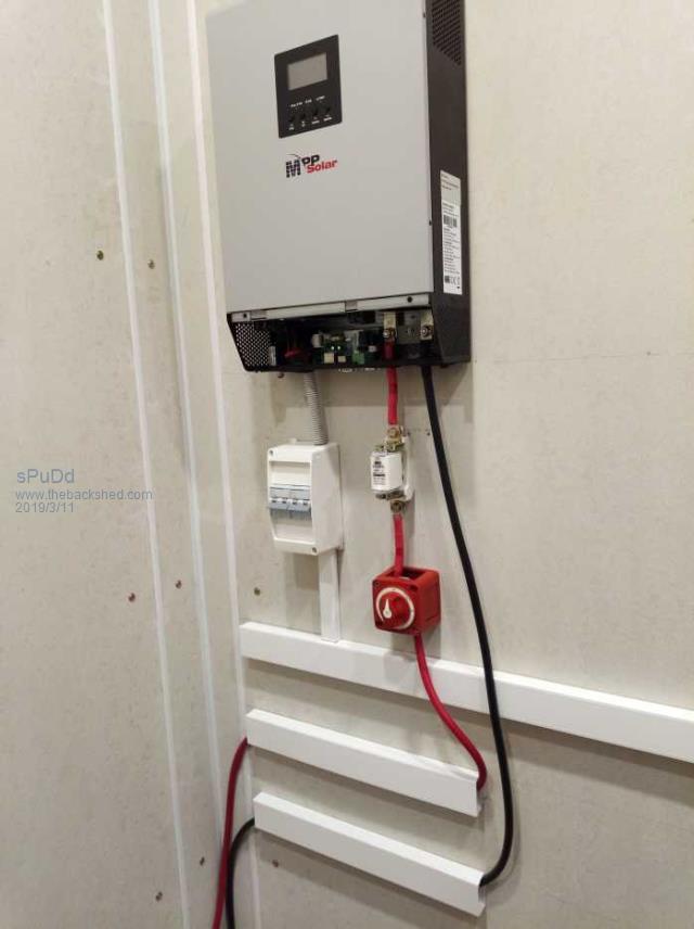 The 5KW MPPSolar inverter. It runs as an inverter only. I've been impressed with these so far. For 9 months my entire house has been running off this inverter with not one failure. 3KW oven, 3KW Mig welder, 3HP power tools, air cons day & night, 3.6KW hot water system booster element, lights, PCs, fans, fridge/freezer, washing machine, clothes dryer etc. Version 2.0 will use a few of these in parallel for the added workshop loads.
