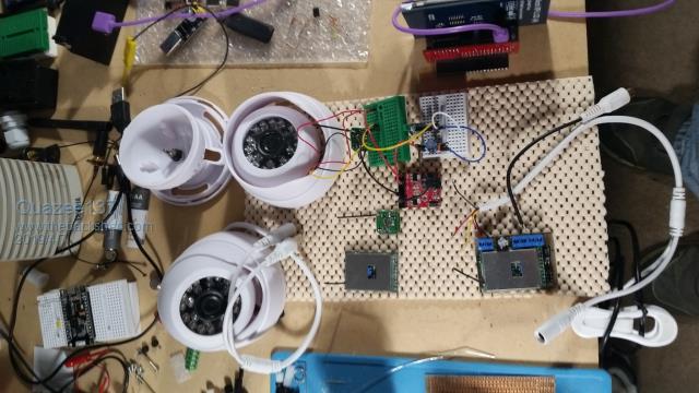 Using the RPi zero W with WiFi and camera make the install easy and can be setup be be recorded with the RPi or sent to PC and viewed on your phone. There are WiFi cameras for cheap to $$$ out there needing only power. A router setup for the cameras could do a LAN as I don't want internet to see them 24/7 but can feed them to net through my Linux system. You could have four of the Wifi Cameras one each in a browser in a 2 by 2 screen. even on a tablet. I also got a few of these to play with. Main bad is no doc's or wrong doc's ![]() There seems to be at least 3 versions of the transmitters. The one they sent did not match the picture and is a 4 Ch where two others I looked at have the full 8 Ch's. I used two of these to send front and back yard cameras to TV's. with remote switch from HDMI to AV input to see front yard camera then flip a switch on the box I made I can see the back yard. Here state side I post that audio and video recording may be going on in this area. Just to keep me legit. Here is a shot of the test setup ![]() |