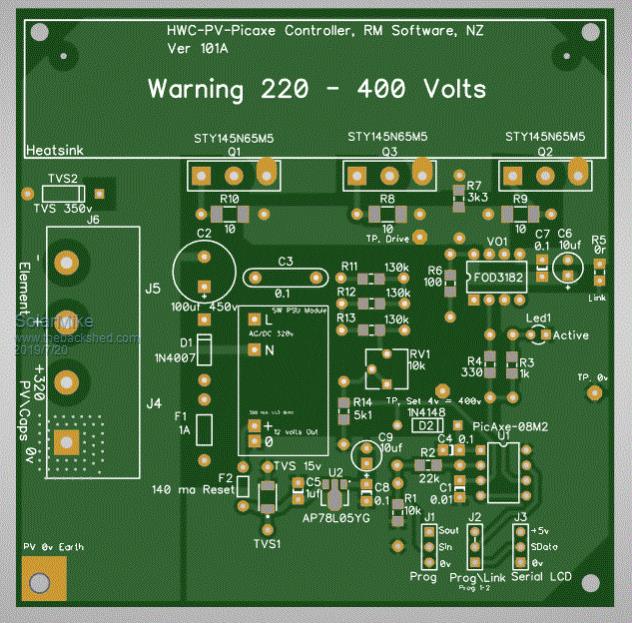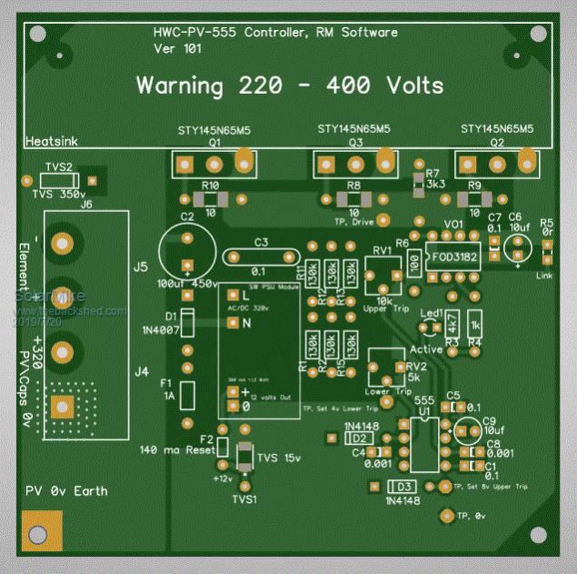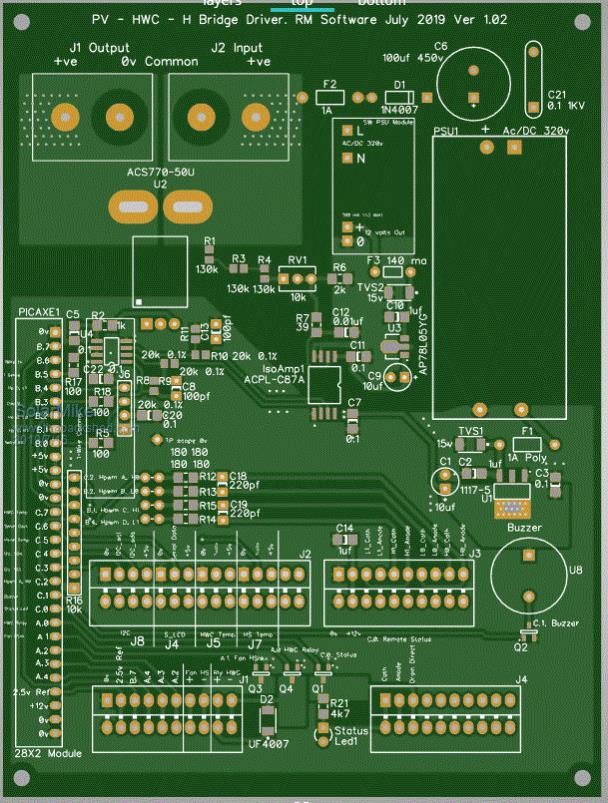 Have completed the driver pcb that allows me to experiment with either full mppt control of the PV to HWC using an H-Bridge or a single mosfet switch, (drive the mosfet opto power module a few posts back.
