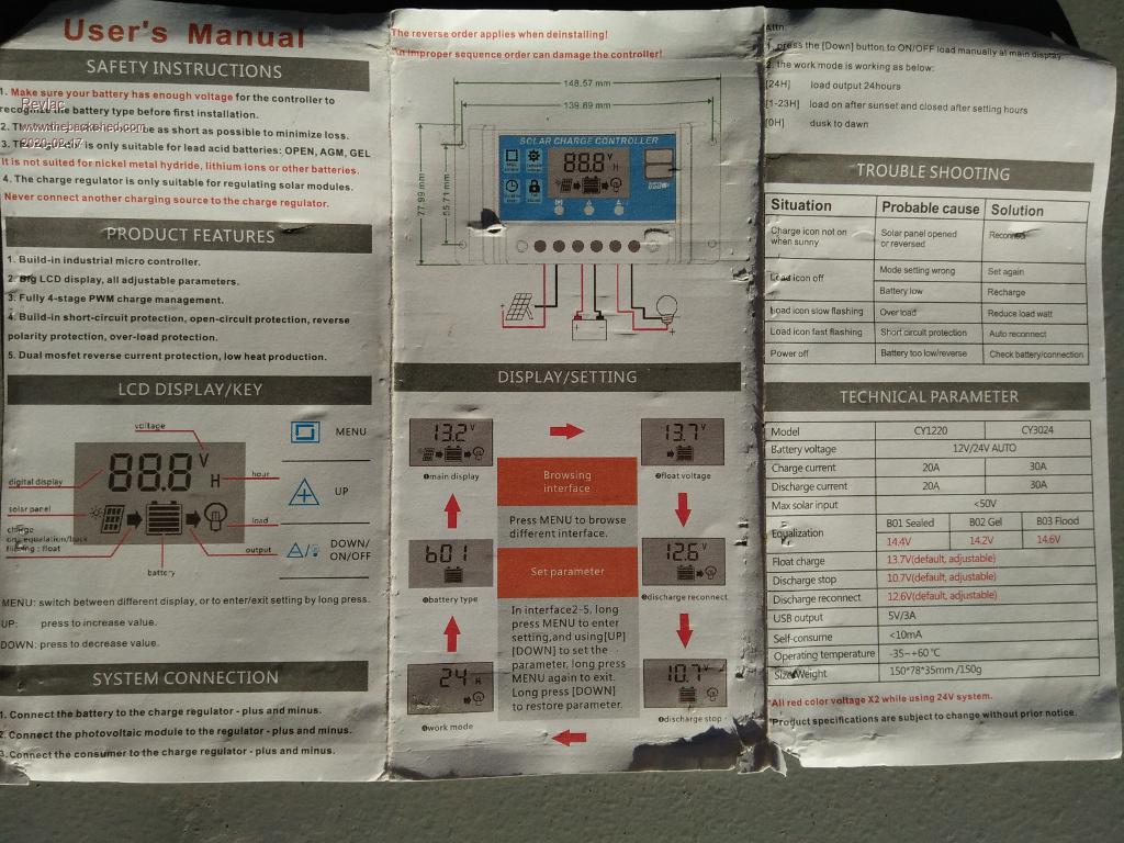 Ok had a look at the settings and have been using BO3 Flood. float is 13.7V, The Model is CY3024 Didn't see any adjustable function or equalization. It might be like the 2 other charge controllers that just go to float and nothing else, Will have a look in the morning and see if the voltage is any higher. ![]() Is this the same? Cheers Aaron Off The Grid |