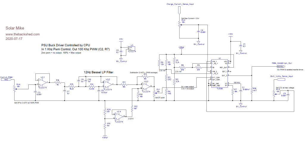 Here is the final schematic for the 100 Khz (or higher) buck converter driver.