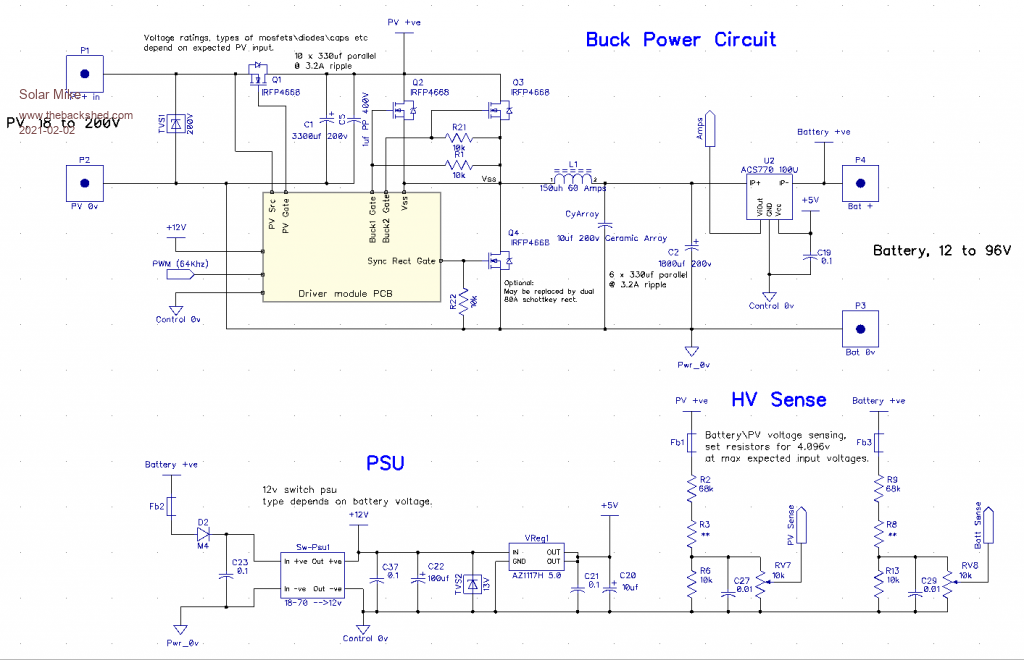 Could you please redraw the MPPT controller schematic for me? because I don't know much about electronics... at least 150V/45 amp (60 amp), I will put the solar panels in parallel... for now I would have a 12V lifepo4 battery and after some time I will buy another 12V battery. The Victron Energy 150/60-Tr MPPT is very expensive. ..I will be very grateful to you for that...I also want to build something original...I will be happy if you then send me the scheme to my email: tomas.matokar@post.sk... or .... matokar . tomas@gmail.com