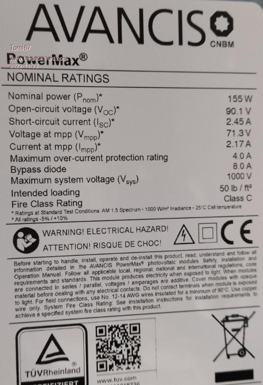 Hello, I would like to ask you for some modifications to the MPPT Solar Charge Controller (ESP32 + WiFi), I would like to build it myself. I would need it to handle the input voltage from 4x Avancis PowerMax 155W solar panels with CIGS technology. Two in series and two in parallel would be connected. The battery would be Lifepo4 12v approx 100Ah. I would like an MPPT controller for 250V /60A control. + LEDs for charging Bulk, Absorption, Float. What modifications would you recommend in terms of replacing parts, especially MOSFETs and other parts if needed. It would be better to show the changes in the schema. I am also sending the datasheet of the solar panel + parameters Voc, Isc, etc.